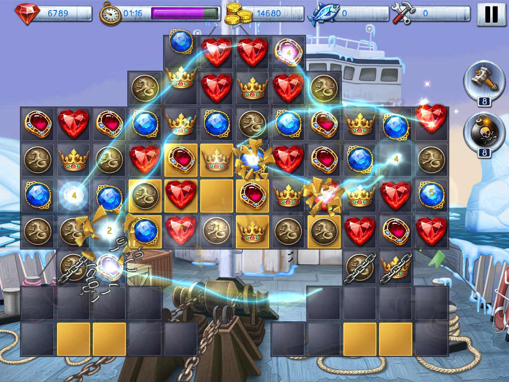 Do you remember the end of Lost In Reefs 2? We promised new adventures and challenges for those who were stubborn and smart enough and managed to complete all the game levels. Keeping the promise we've equipped an expedition to Antarctic with a mission to find the sunken city in the sea. It was a long way, our ships have overcome all the challenges of the long way to Antarctica, survived the storms of the cold seas, broke icy winds and avoided all the traps. Now we are at the location and ready to start our searches. It's not that easy though, as any expedition requires a plenty of resources. We need to buy all the necessary equipment, so would you help us sponsoring the works? Prepare to complete the challenging match3 levels of Lost In Reefs: Antarctic and to reveal the secret of the ancient civilization!